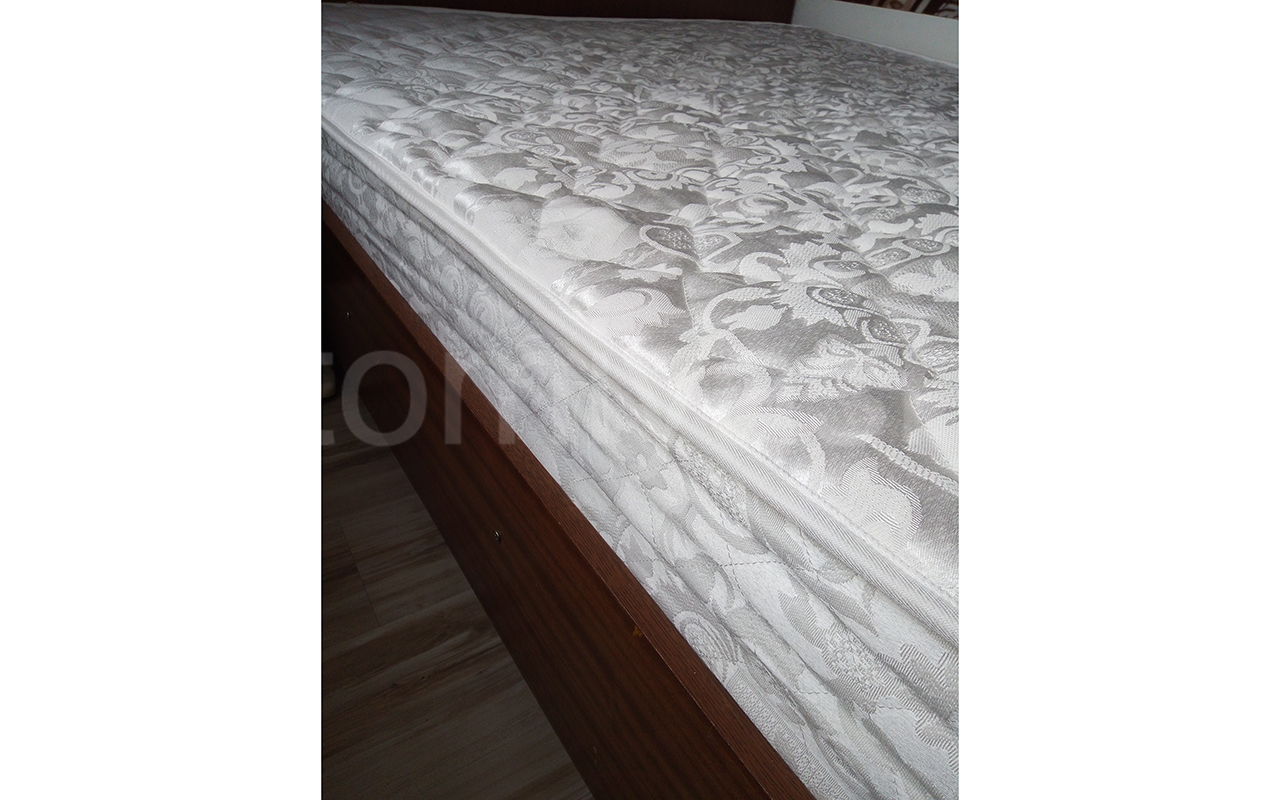 Верхнее покрытие матраса хлопковый жаккард LUX - высокопрочная натуральная ткань, состоящая из хлопчатобумажного волокна с особым способом переплетения волокон. Хлопковый жаккард может быть двойным (дублированным) или недублированным. Как правило, дублированный жаккард используют в качестве верхнего покрытия для матрасов, чехлов и наматрасников. Особенность материала заключается в том, что рисунок, получаемый в результате переплетения нитей волокна, одинаковый с лицевой и изнаночной стороны. Самой важной характеристикой ткани является его экологичность и износостойкость.